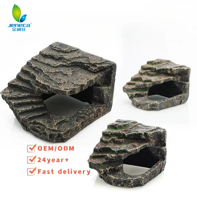 Jeneca Reptile Hideout, Large Rock Hidden Cave, Turtle Sunbathing Platform, Lizard, Bearded Dragon, Amphibian