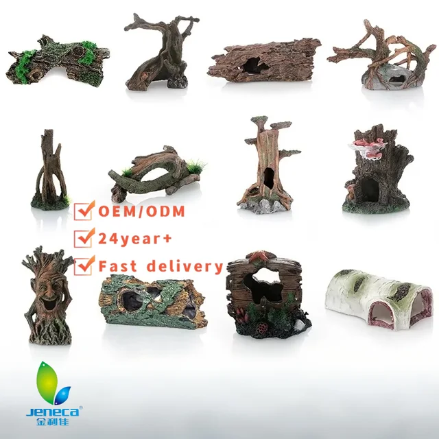 Jeneca Aquarium Decorated with Hollow Tree Trunks, a Hiding Place for Fish, a Cave for Geckos, and a Habitat for Small Animals
